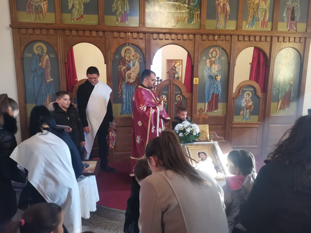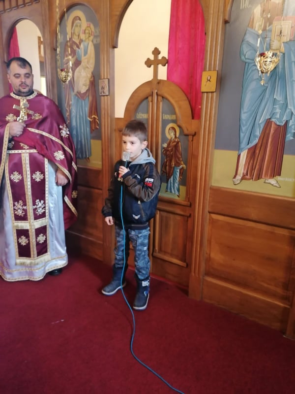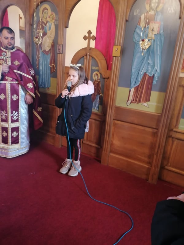 Након одслужене литургије ученици рецитатори кроз своје рецитације, које су претходно припремили уз помоћ парохијског свештеника и својих учитељица, свим присутним су приближили лик и дјело Светог Саве. По завршетку литургије и одржаног програма породица Љубичић обрадовала је ове вриједне и надарене ученике светосавским пакетићима.